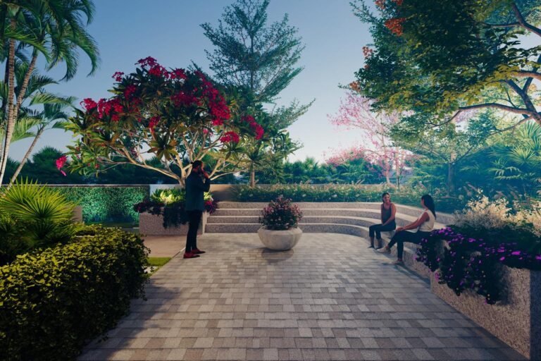 Landscaped green space with plantation for better experience.
